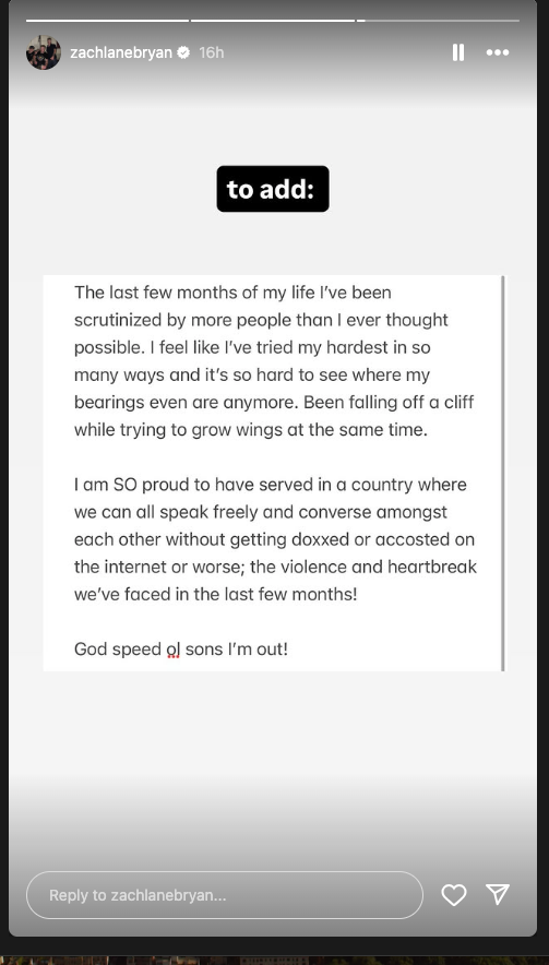 Bryan clarified that he is “on neither of these radical sides” and tells those disappointed in him he’s trying his “best too and we all say things that are misconstrued sometimes.”